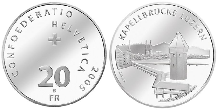 20 Franken Gedenkmünze 2005 Kapellbrücke Luzern