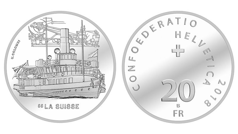 20 Franken Gedenkmünze 2018 Dampfschiff La Suisse