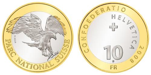 Auf der Bildseite ist das Steinadler abgebildet links Künstlername unten PRAC NAZIUNAL SUISSE.