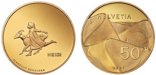 50 Franken Gedenkmünze 2001 Heidi Gold
