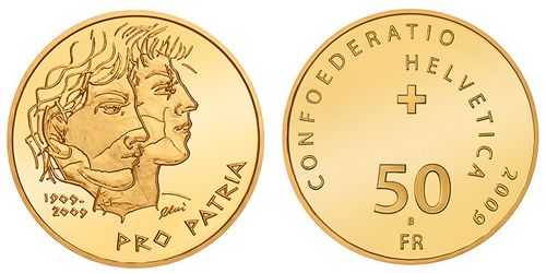 50 Franken Gedenkmünze 2009 100 Jahre Pro Patria Gold